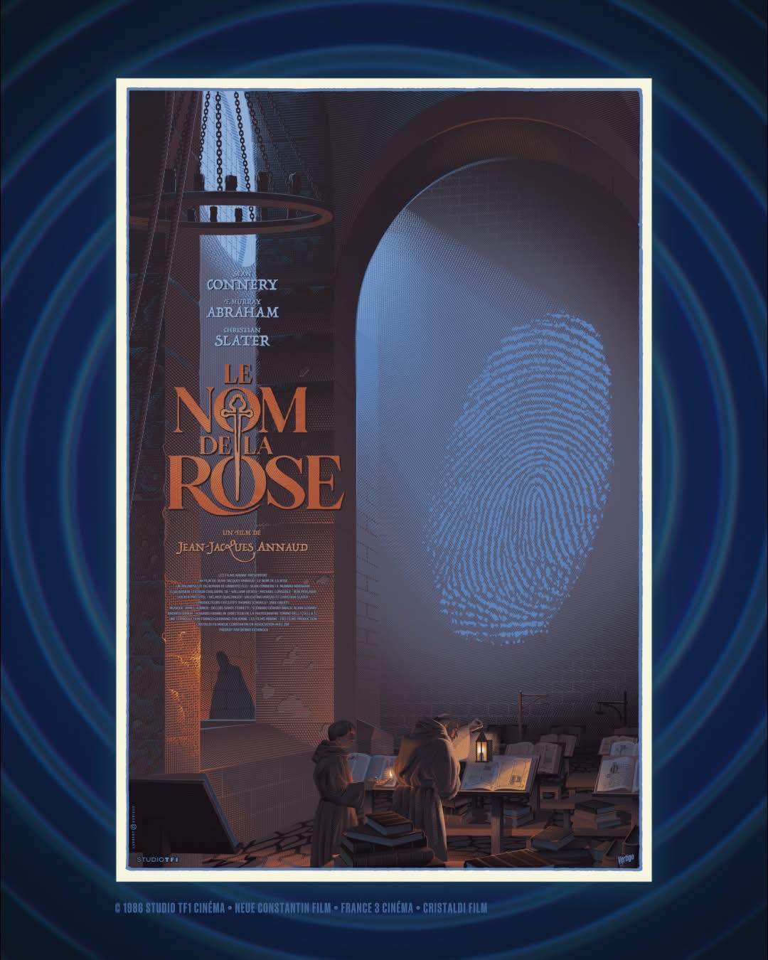 Hieronder zie je Laurent Durieux’ poster voor Jean-Jacques Annaud’s The Name of the Rose (1986). De poster is gemaakt door een - nieuwe -, Franse, postergallerij: Vertigo. Zowel de poster als de variant erop zijn nog te koop: je kunt ze hier kopen. Als je het boek of de film kent snap je de poster onmiddelijk.